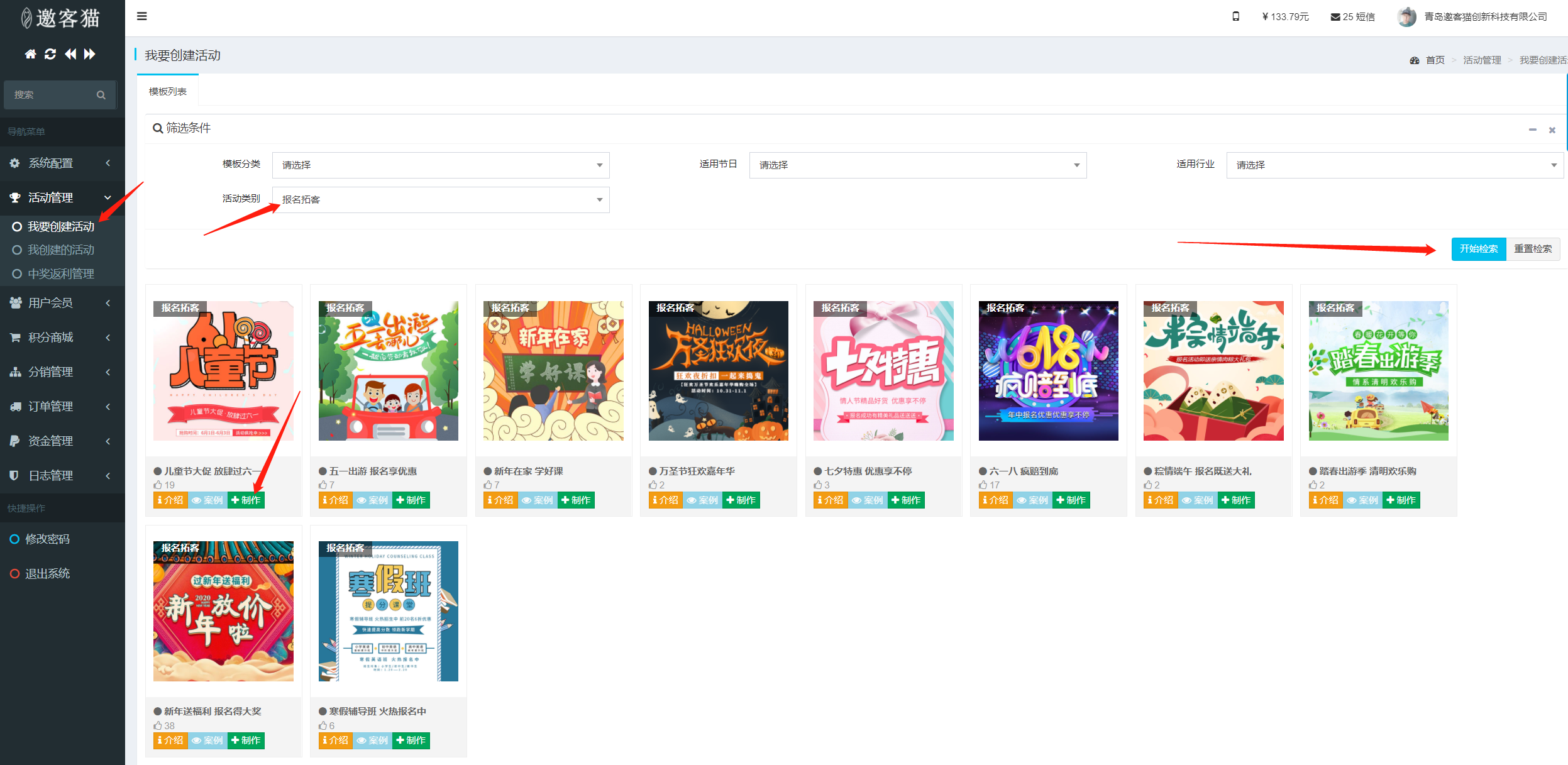 强烈建议您用电脑浏览器登陆电脑端后台来创建、编辑和修改活动。快捷步骤如下: ①登陆后点击“活动管理==我要创建活动”,选择“活动类型”,点击“检索”,找到合适的模板,点“制作”; ...