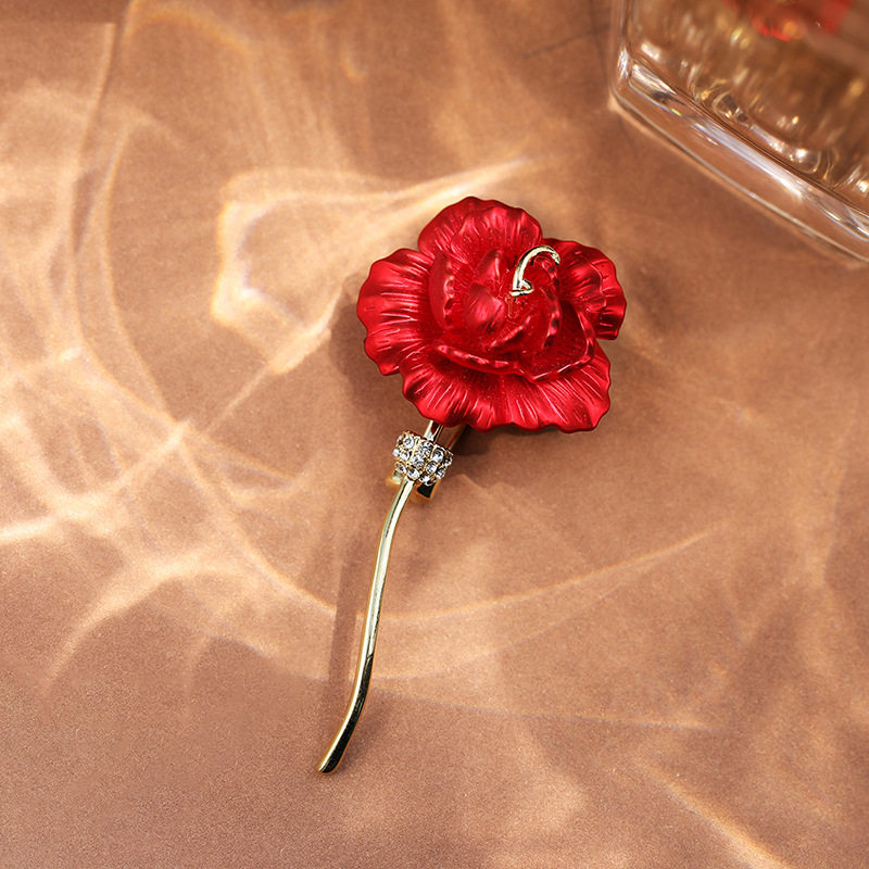 YORK CAT 怒放红玫瑰胸针